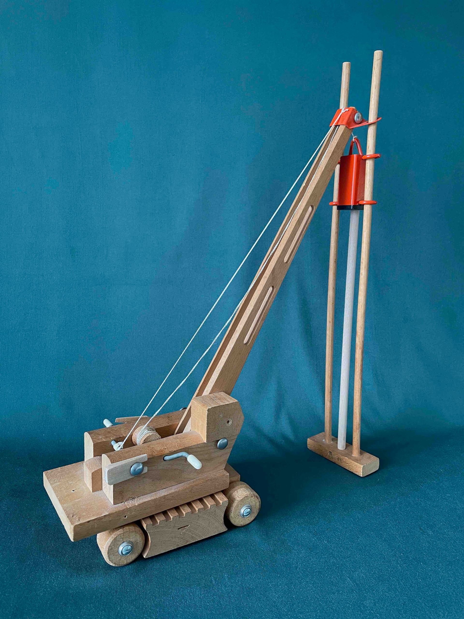 Op het basismodel draait een platform met een cabine, een giek en twee lieren. Aan het eind van de giek bevindt zicht een oranje vlindervormig stuk metaal met twee gaten. Door deze gaten wordt de heistelling gestoken. De heistelling zelf bestaat uit twee geleiders en een oranje heiblok. Met de ene lier wordt de giek op- en afgetopt. De andere lier zorgt voor het hijsen en vieren (door loslaten) van het heiblok. Door het ontbreken van een vergrendeling heeft de giek de neiging om voorover te kantelen. Met een wig (zie foto) kan dat voorkomen worden.