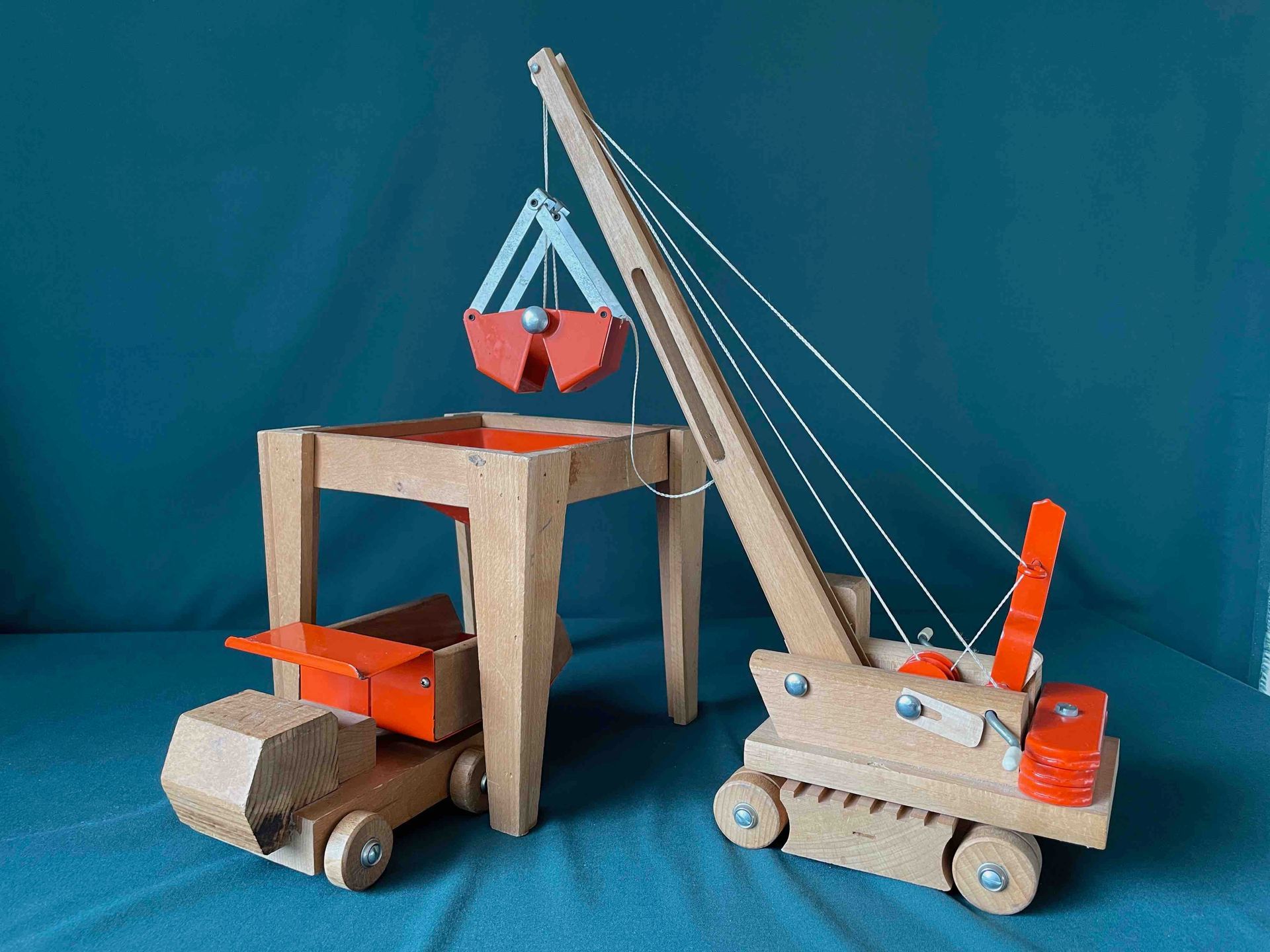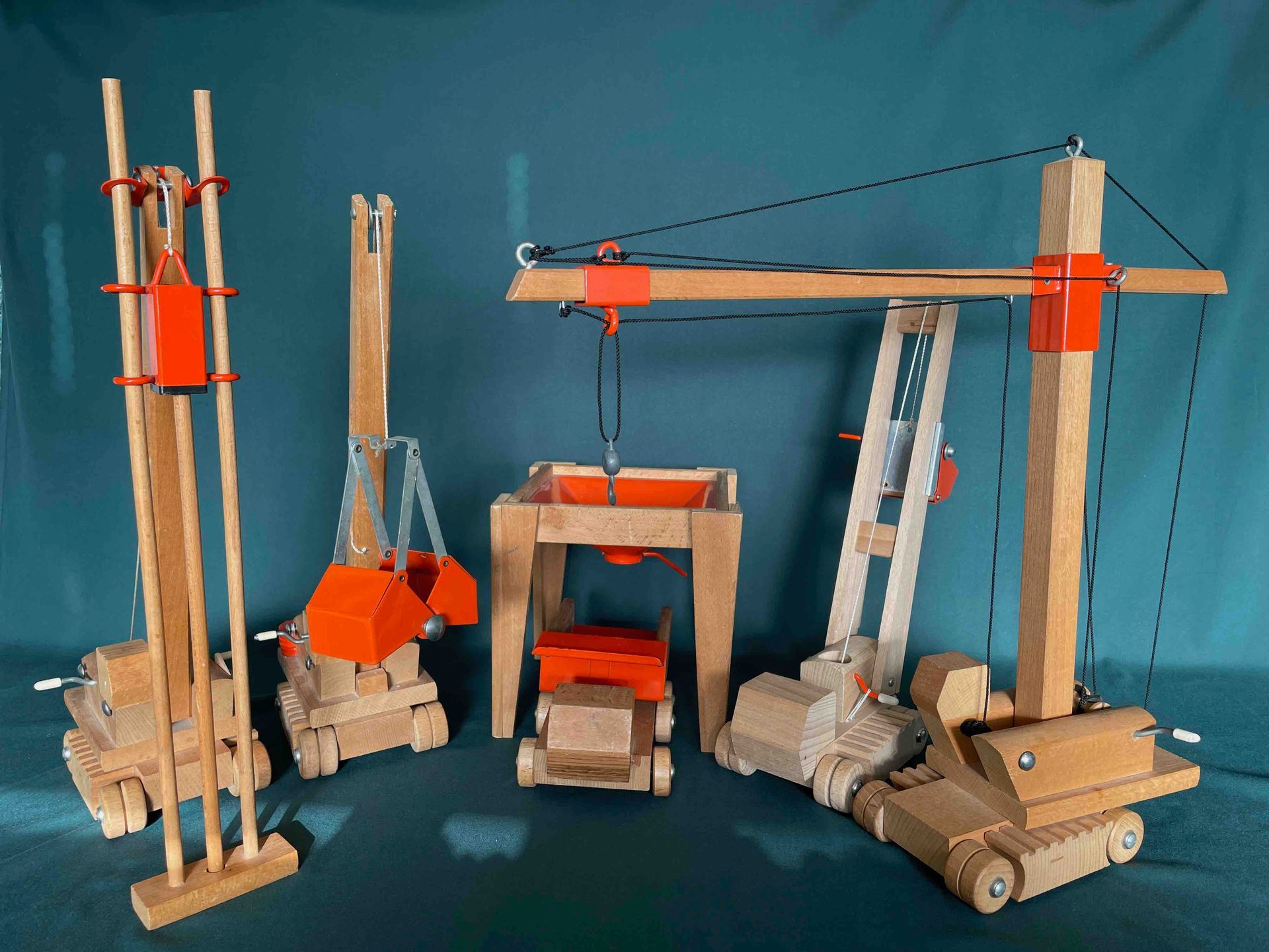Op ieder model zijn onderdelen van metaal voorzien van een oranje epoxylaag aanwezig. Het maakt het geheel tot design, wellicht te mooi voor de zandbak. Speelgoed voor de elite of voor de vitrine? Hoe dan ook mooi!